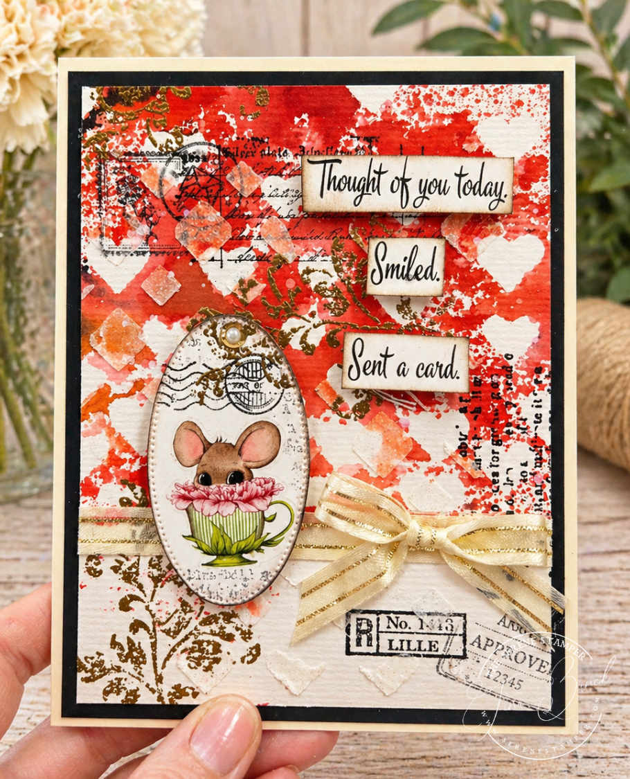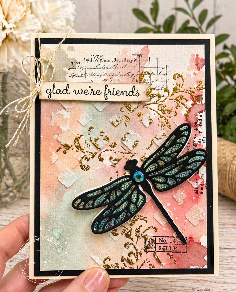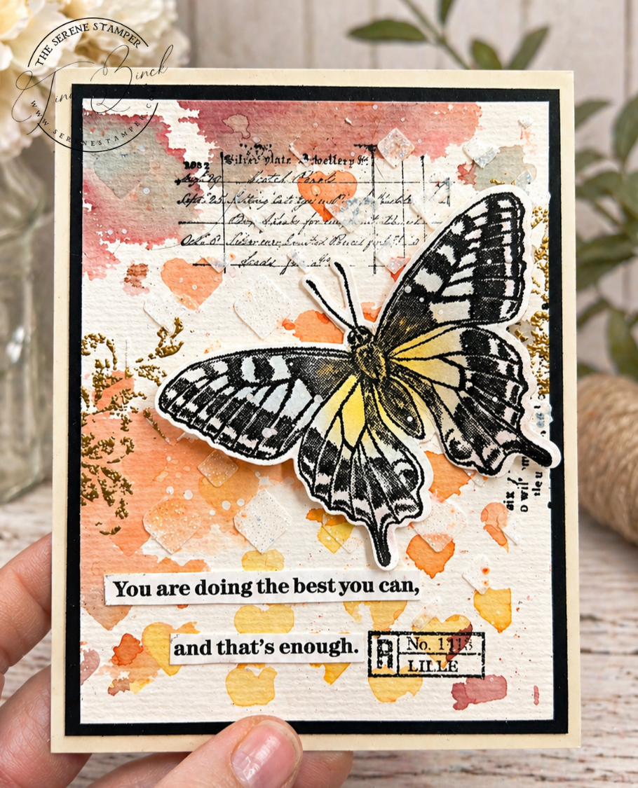 In today’s video, I brought you into my craft room as I created backgrounds using washi tape, Brusho powders, and stencils… and then over the next couple of days, those pieces turned into a full stack of finished cards.