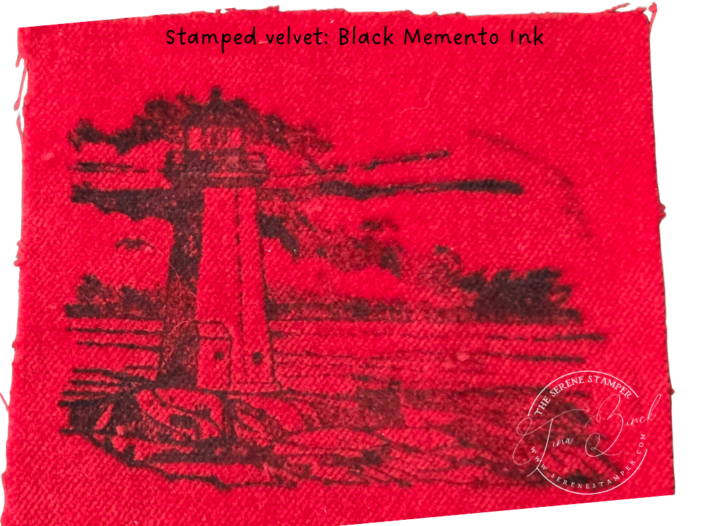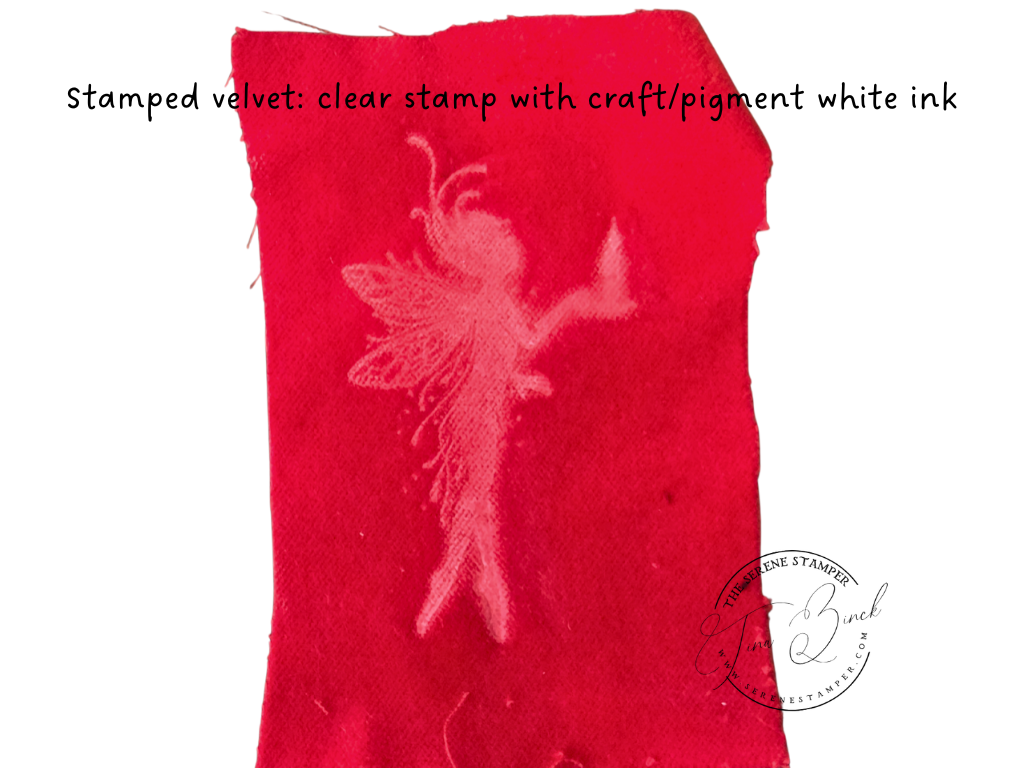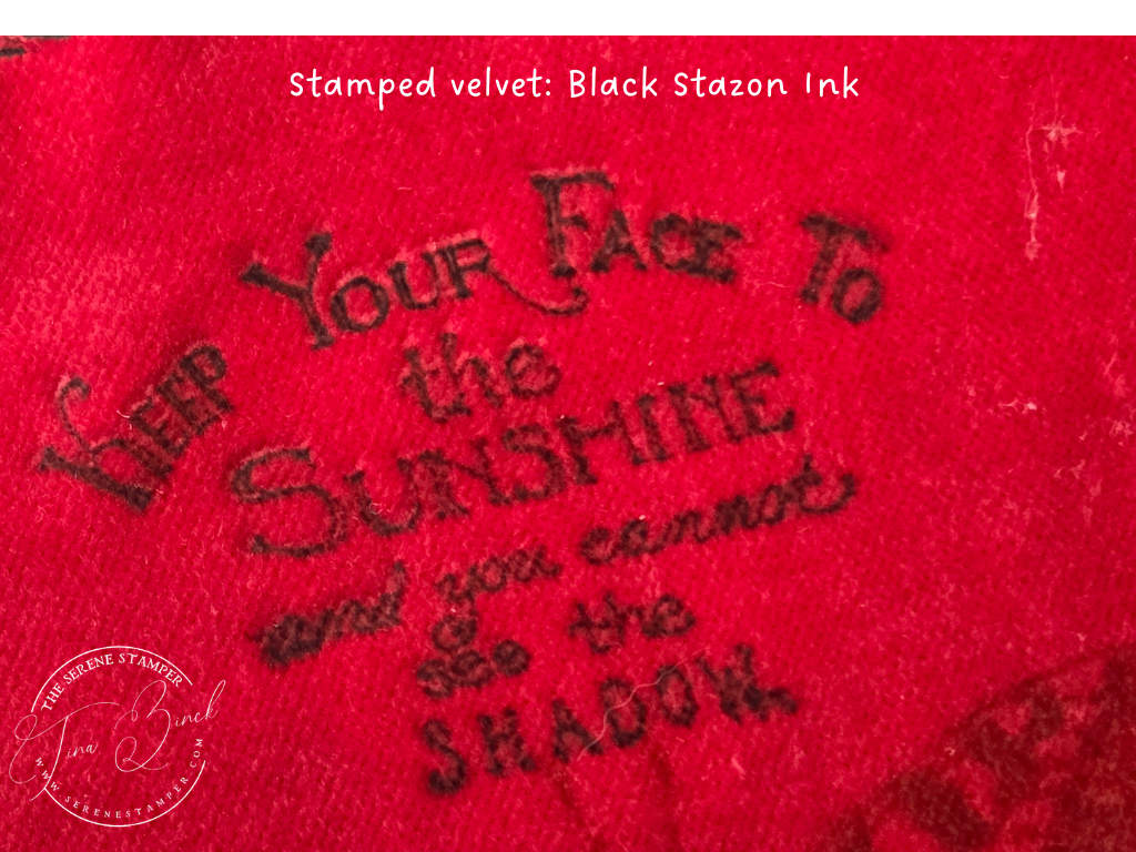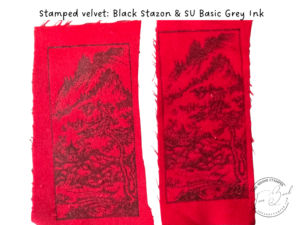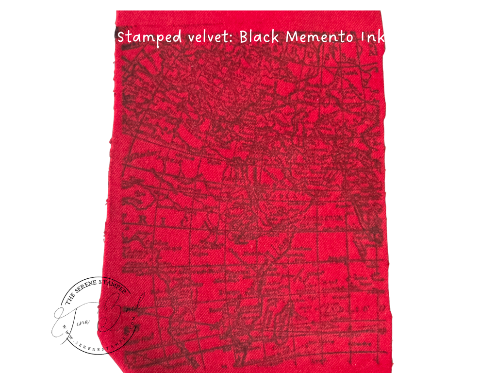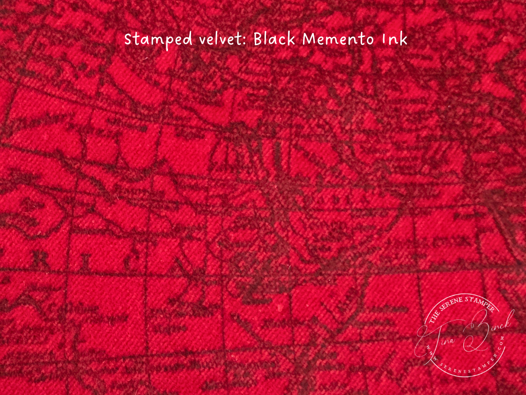 I had so much fun experimenting with ink pads, water, stamps, and an iron to create this beautiful stamped velvet!