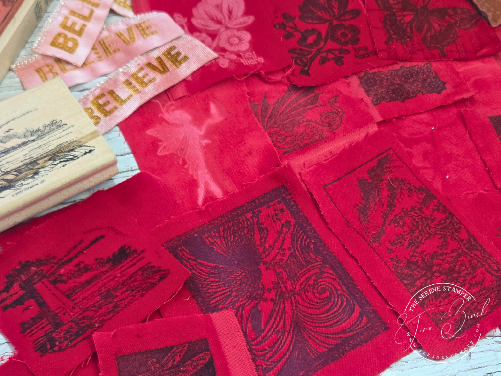 HOWEVER, as I discovered as I filmed my video, fine detail stamps work too! I think it depends on the fabric, ink and stamps that you use.